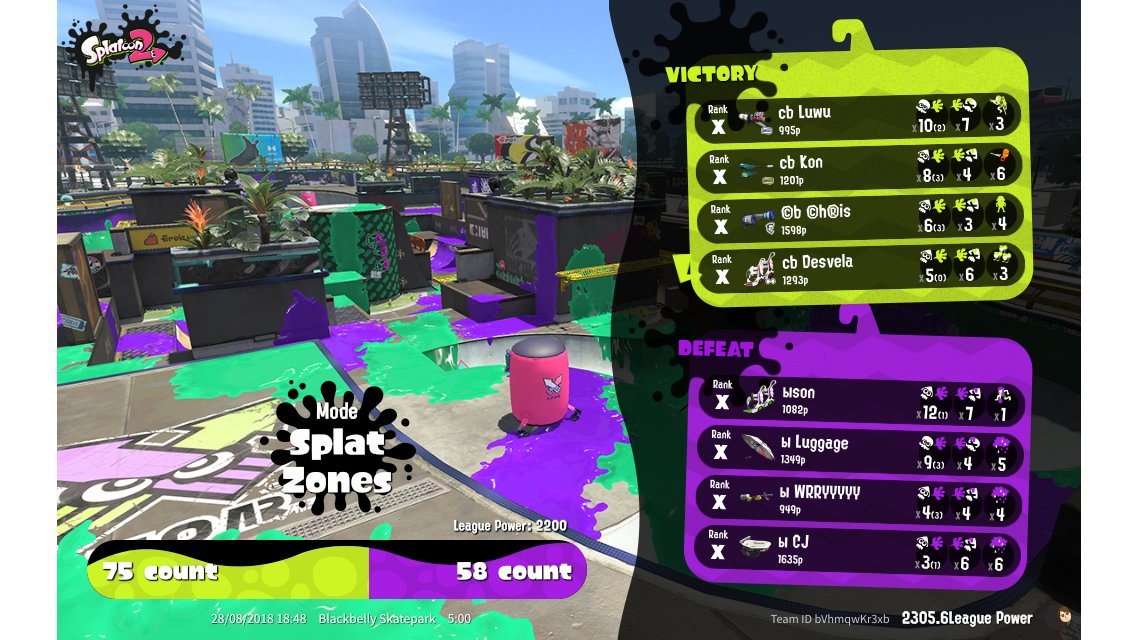 | Mode | Splat Zones - League Battle (Quad) | |||||||||||||||||||||||||||||||