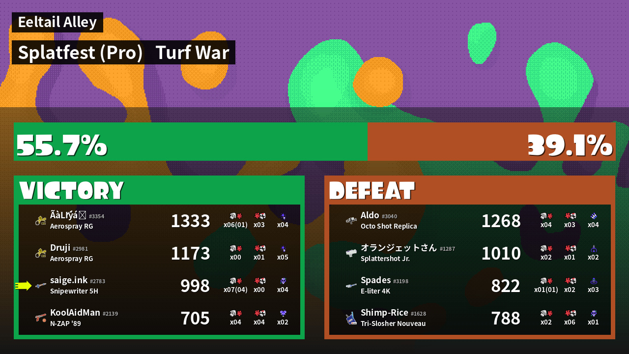 | Medals | #1 Overall Splatter #1 Super Jump Spot #1 Splat Assister | ||