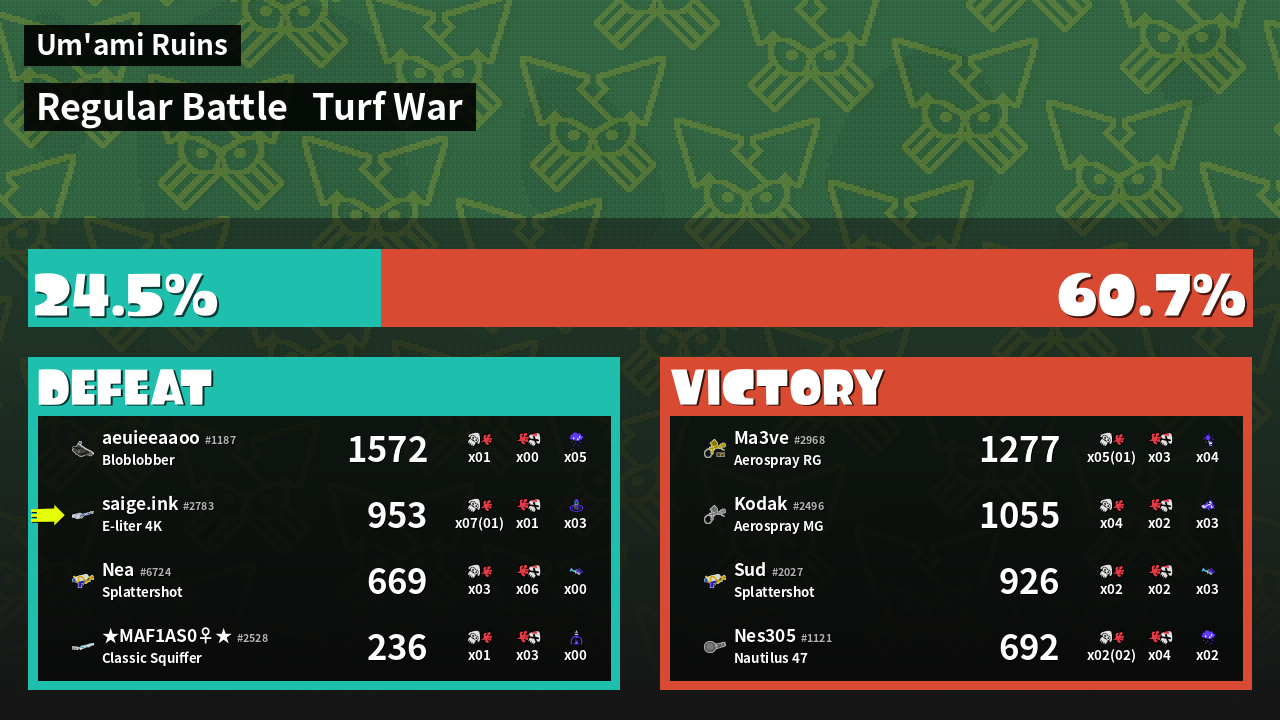| Medals | #1 Overall Splatter #1 Popular Target #1 Enemy Splatter | ||