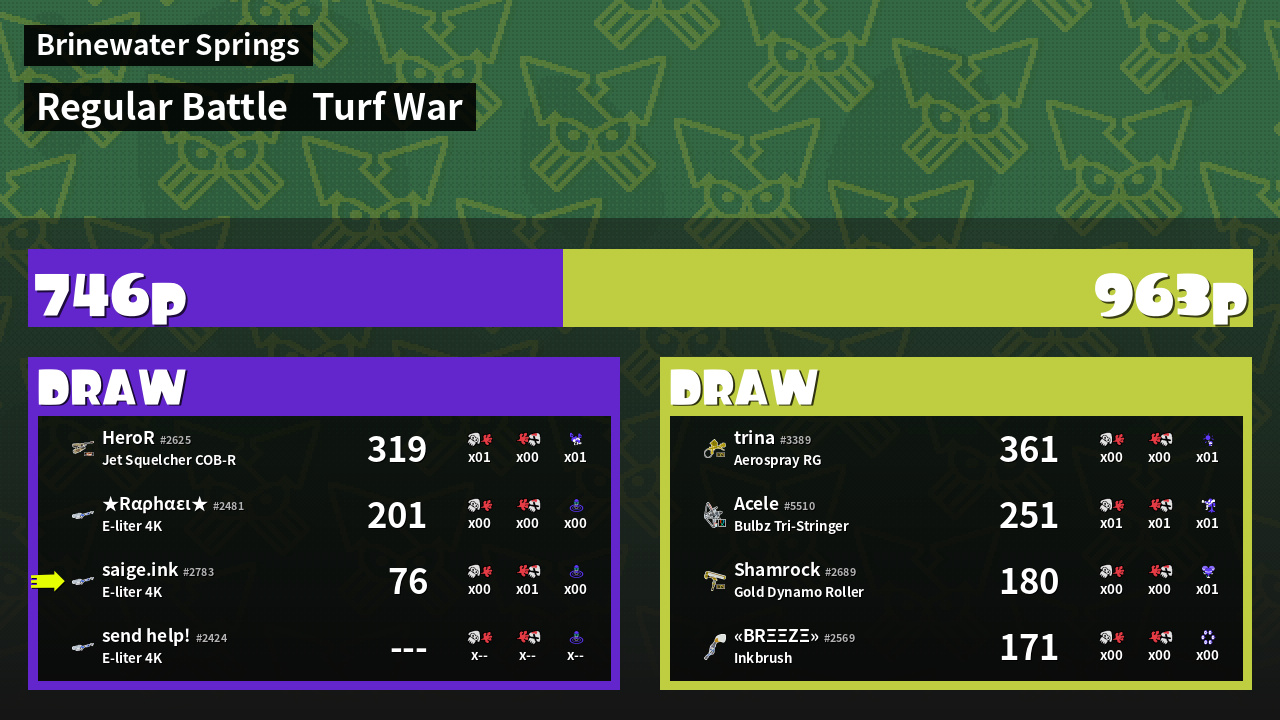 | Mode | Turf War - Regular Battle | ||