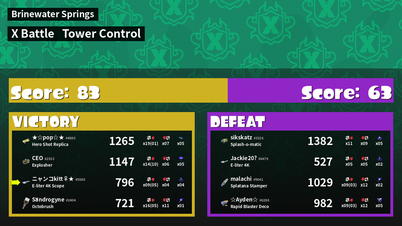 | Weapon | E-liter 4K Scope ( Ink Mine / Wave Breaker) | ||