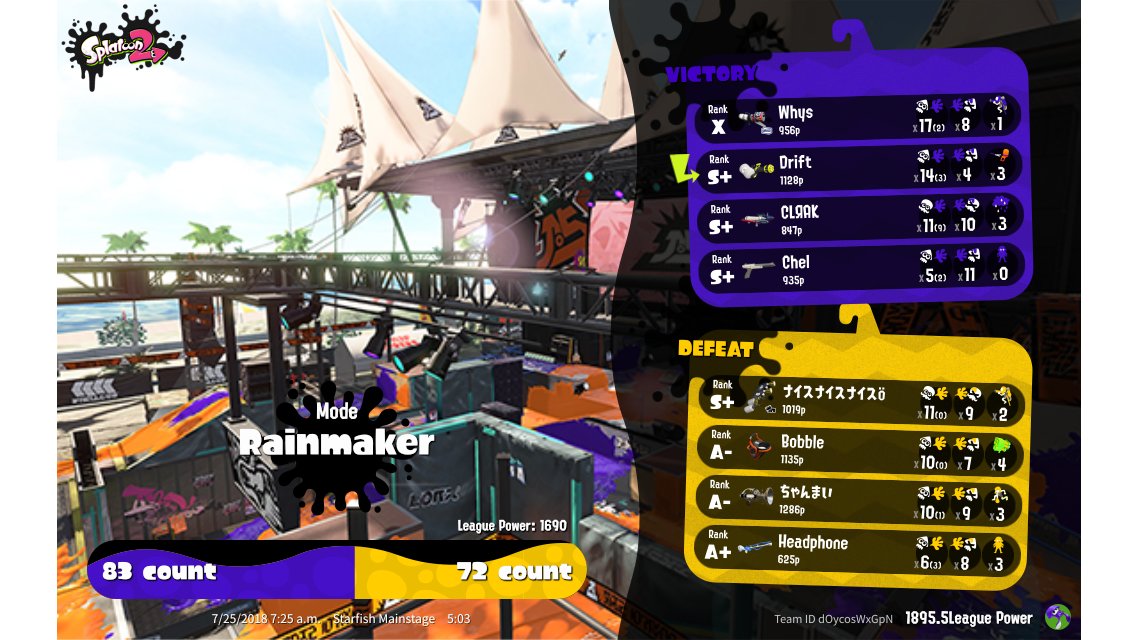 | Mode | Rainmaker - League Battle (Twin) | |||||||||||||||||||||||||||||||||||||