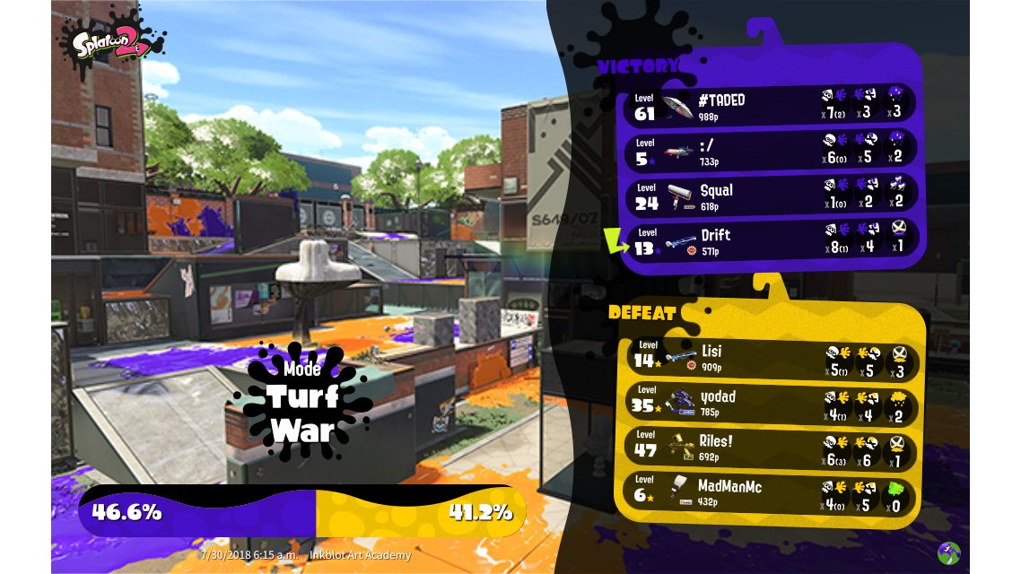 | Mode | Turf War - Regular Battle | |||||||||||||||||||||||||||||||||||||