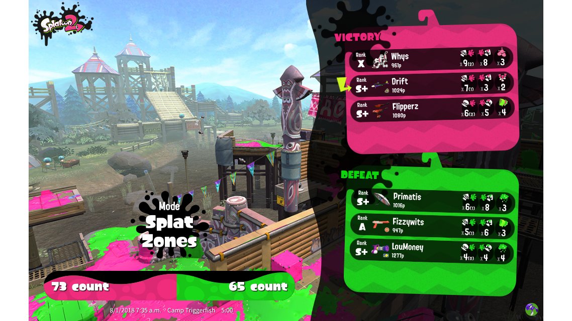 | Mode | Splat Zones - Private Battle | ||||||||||||||||||||||||||||||||||