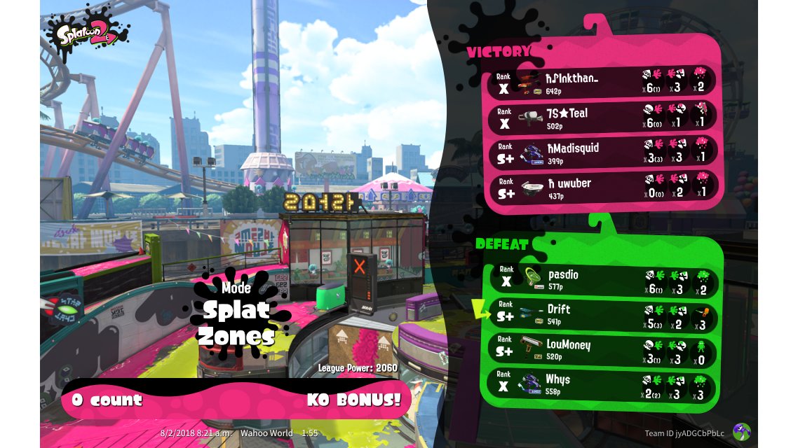 | Mode | Splat Zones - League Battle (Quad) | |||||||||||||||||||||||||||||||||||||