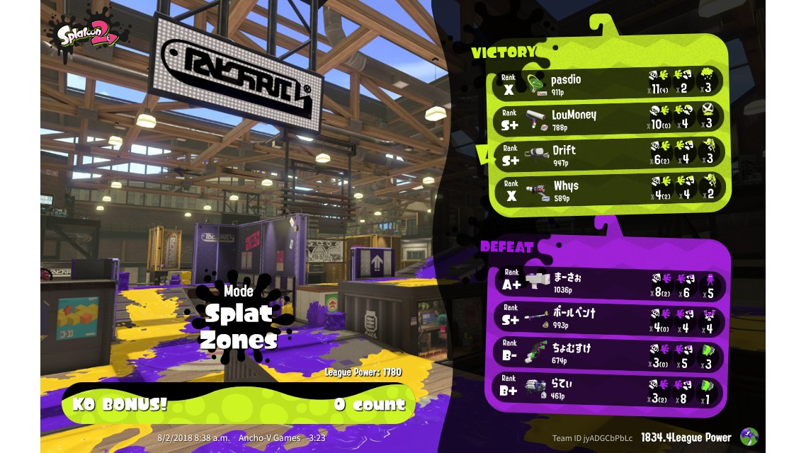 | Mode | Splat Zones - League Battle (Quad) | ||||||||||||||||||||||||||||||||||||||||