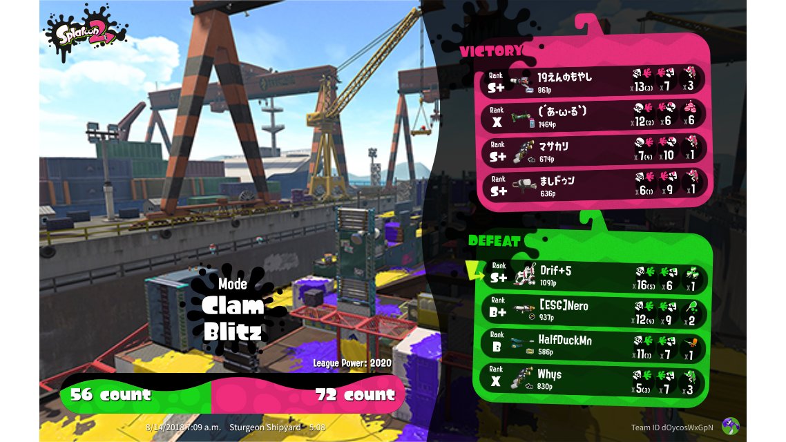 | Mode | Clam Blitz - League Battle (Twin) | ||||||||||||||||||||||||||||||||||||||||