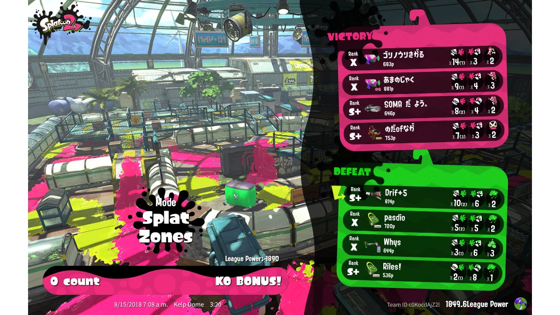 | Mode | Splat Zones - League Battle (Quad) | ||||||||||||||||||||||||||||||||||||||||