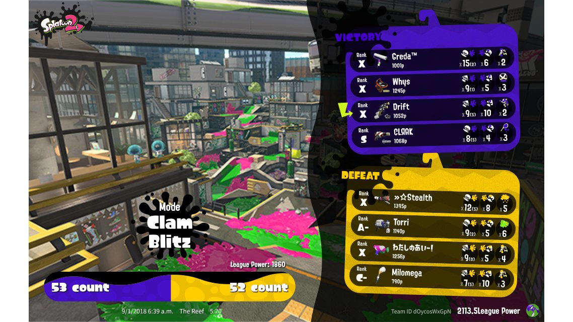| Mode | Clam Blitz - League Battle (Twin) | ||||||||||||||||||||||||||||||||||||||||