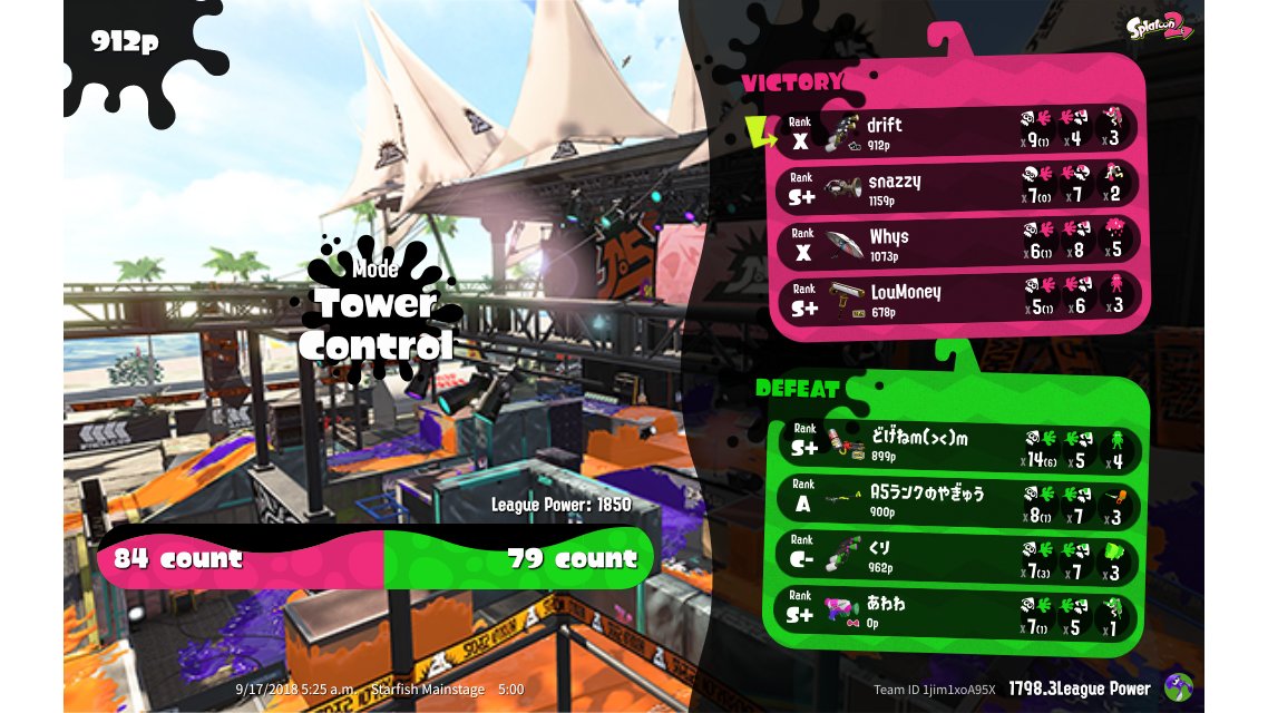 | Mode | Tower Control - League Battle (Quad) | ||||||||||||||||||||||||||||||||||||||||