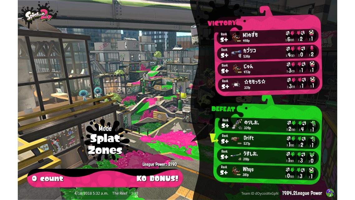 | Mode | Splat Zones - League Battle (Twin) |