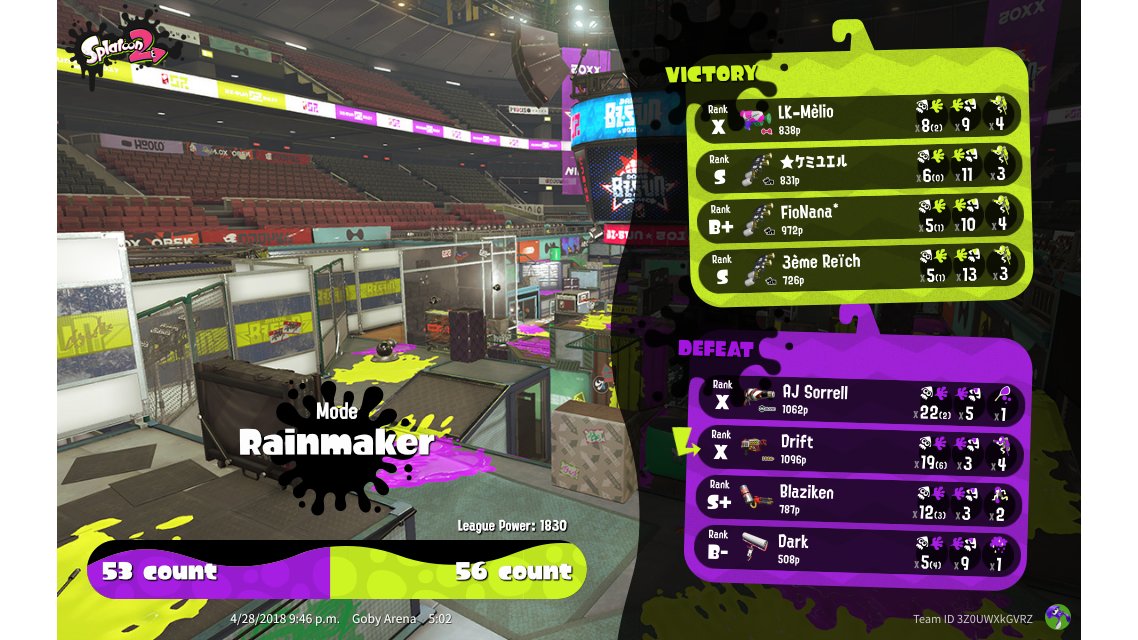 | Name | Weapon | Level | Rank | Inked | k+a/sp | k/d |