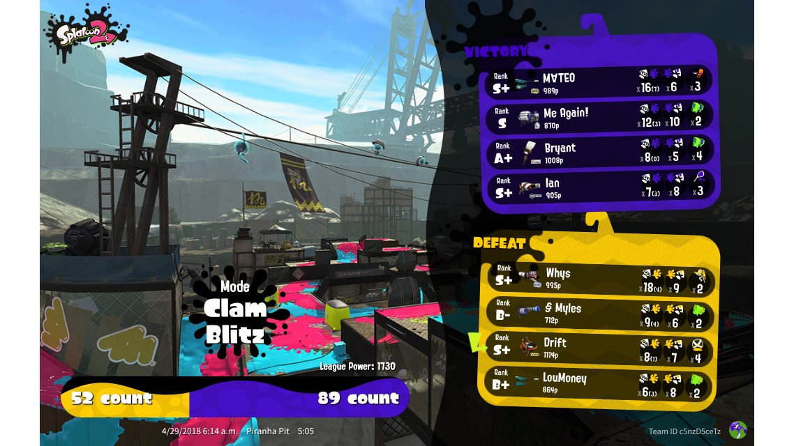 | Name | Weapon | Level | Rank | Inked | k+a/sp | k/d |