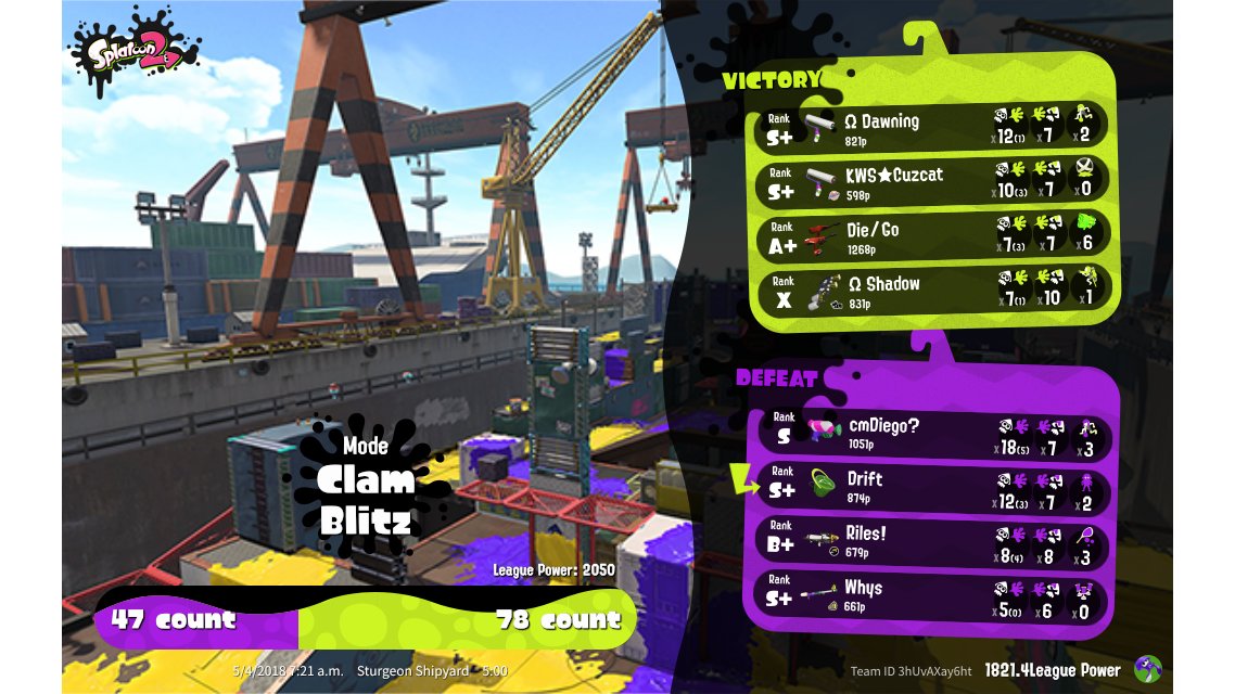 | Mode | Clam Blitz - League Battle (Quad) | ||||||||||||||||||||||||||||