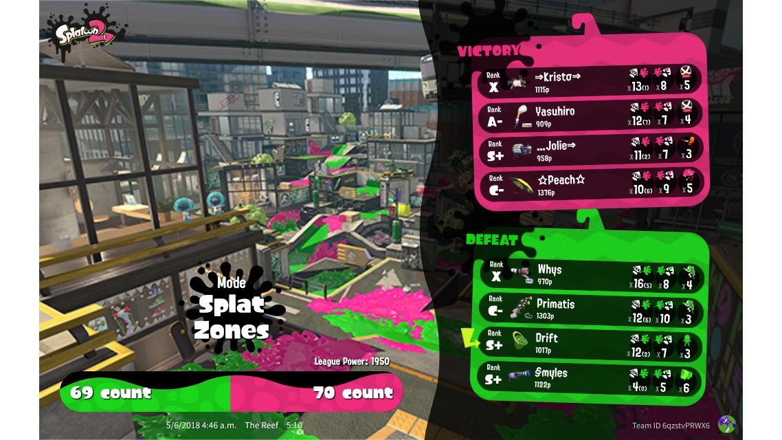 | Mode | Splat Zones - League Battle (Quad) | ||||||||||||||||||||||||||||