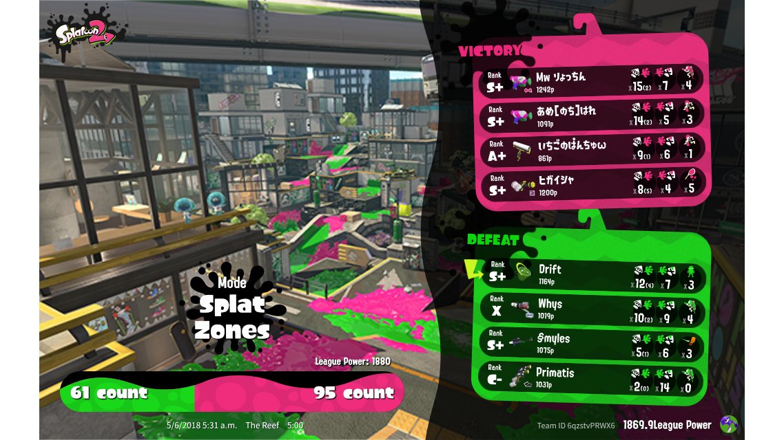 | Mode | Splat Zones - League Battle (Quad) | |||||||||||||||||||||||||||||||