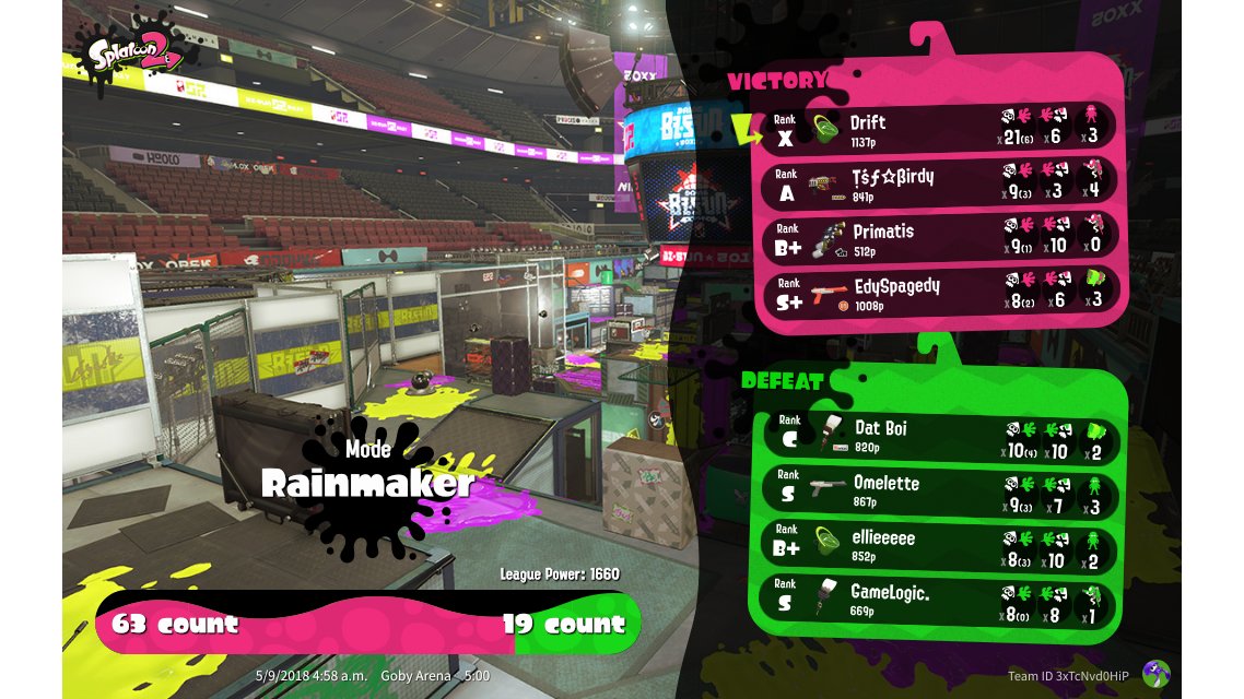 | Mode | Rainmaker - League Battle (Twin) | ||||||||||||||||||||||||||||