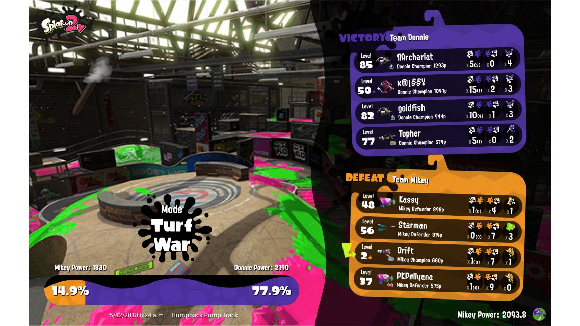 | Mode | Turf War - Splatfest (Team) | |||||||||||||||||||||||||||||||