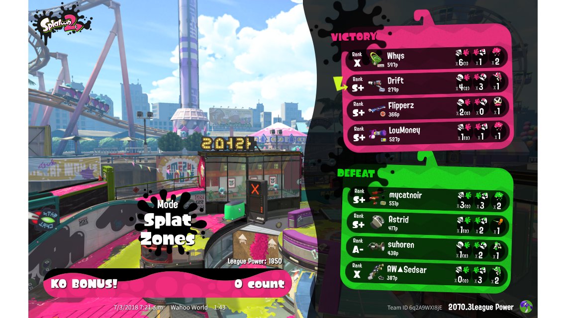 | Mode | Splat Zones - League Battle (Quad) | ||||||||||||||||||||||||||||||||||||||||