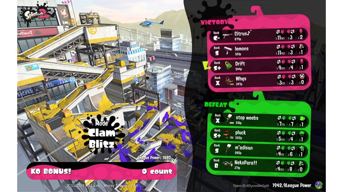 | Mode | Clam Blitz - League Battle (Twin) | ||||||||||||||||||||||||||||||||||||||||