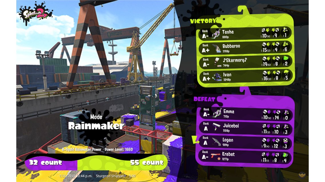 | Name | Weapon | Level | Rank | Inked | k+a/sp | k/d |