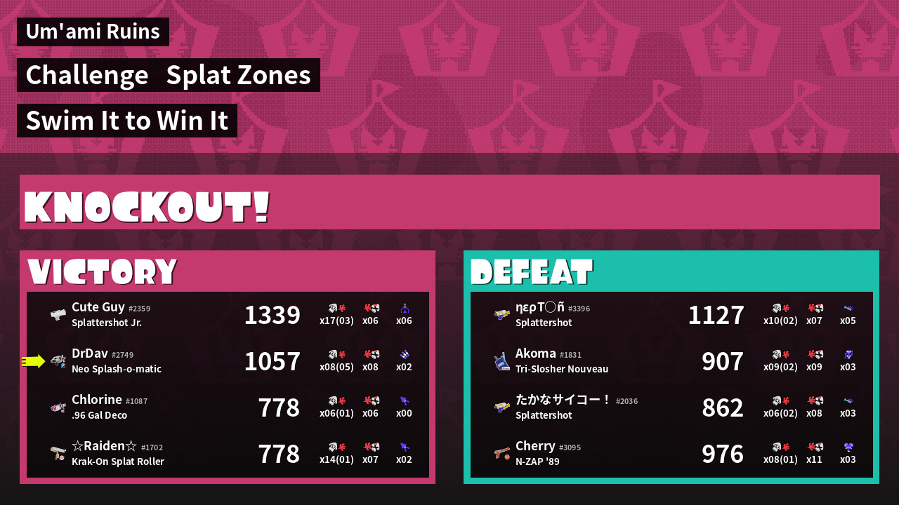 | Medals | #1 Splat Zone Guard #1 Splat Assister #1 Triple Inkstrike User | ||