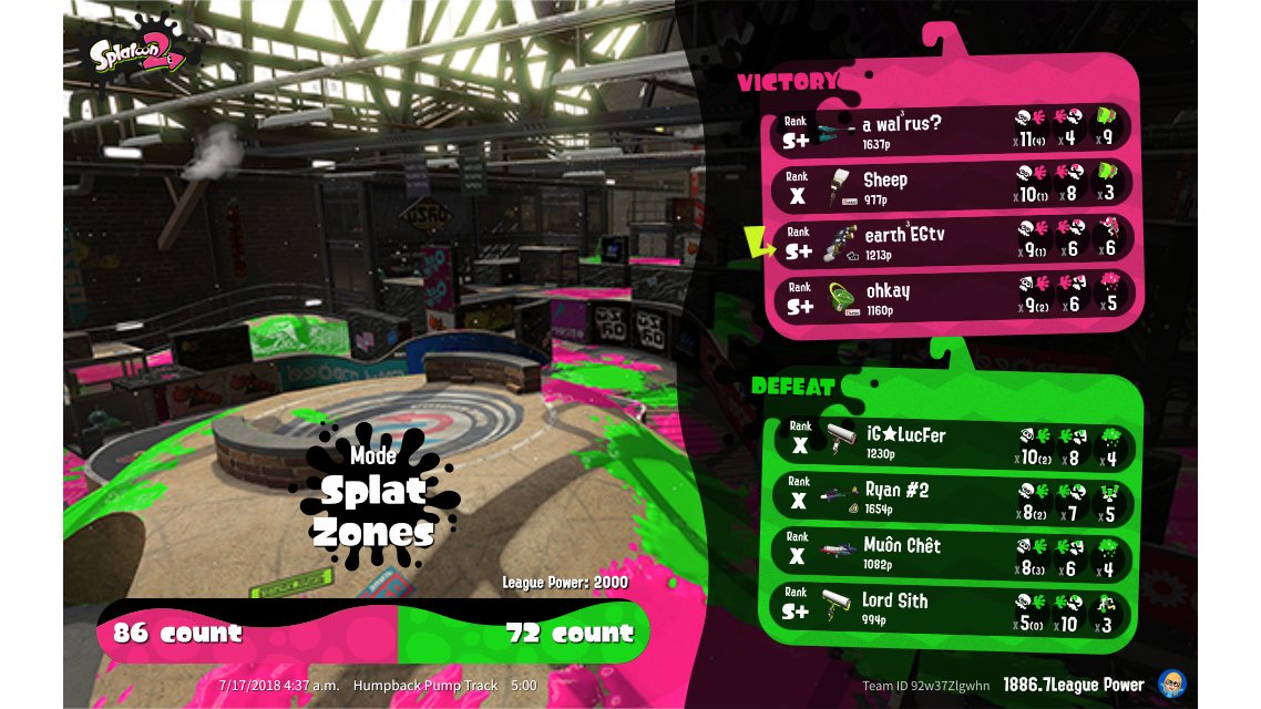 | Mode | Splat Zones - League Battle (Twin) | |||||||||||||||||||||||||||||||||||||