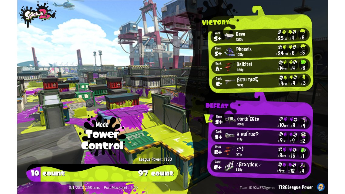 | Mode | Tower Control - League Battle (Twin) | |||||||||||||||||||||||||||||||||||||