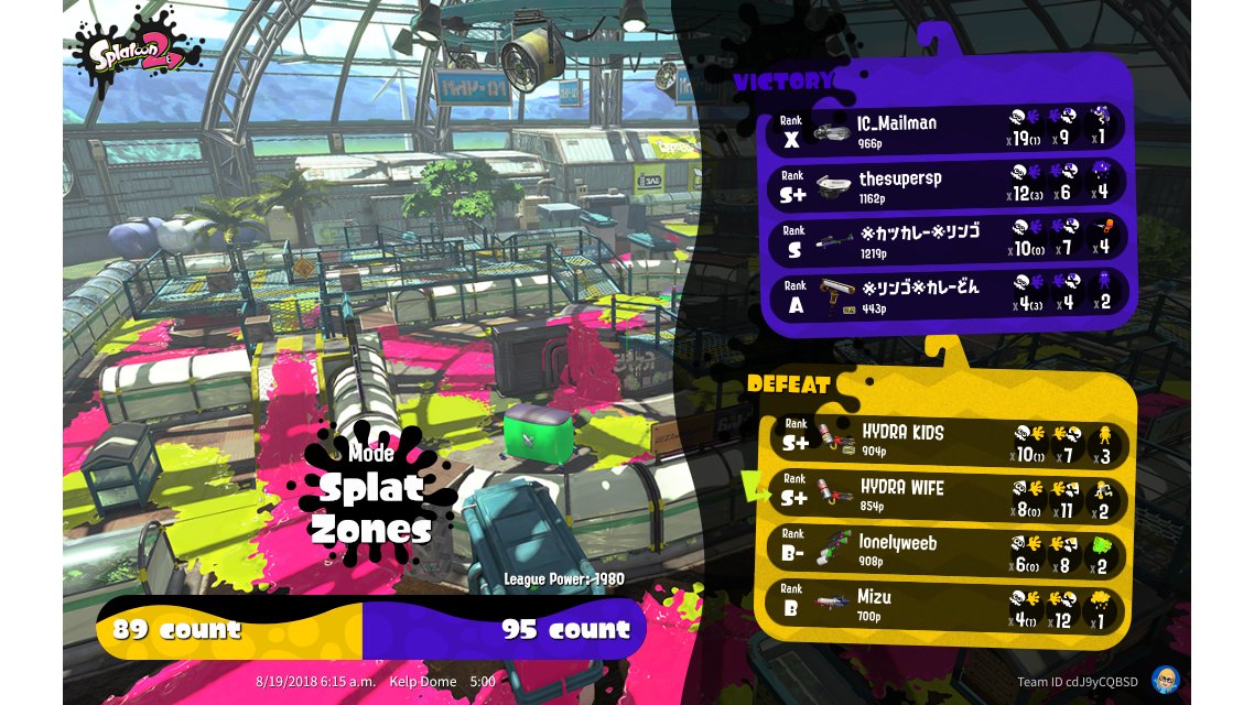 | Mode | Splat Zones - League Battle (Twin) | ||||||||||||||||||||||||||||||||||