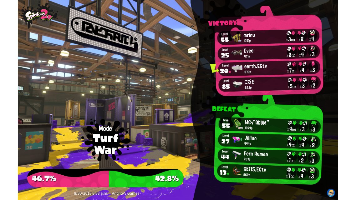 | Mode | Turf War - Regular Battle | |||||||||||||||||||||||||||||||||||||