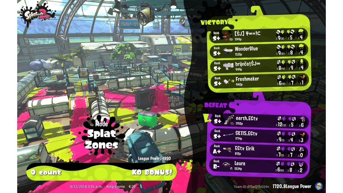 | Mode | Splat Zones - League Battle (Quad) | |||||||||||||||||||||||||||||||||||||