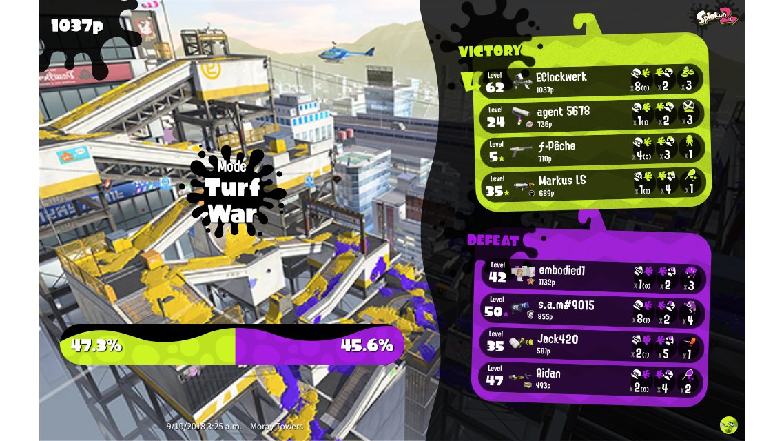 | Mode | Turf War - Regular Battle | |||||||||||||||||||||||||||||||