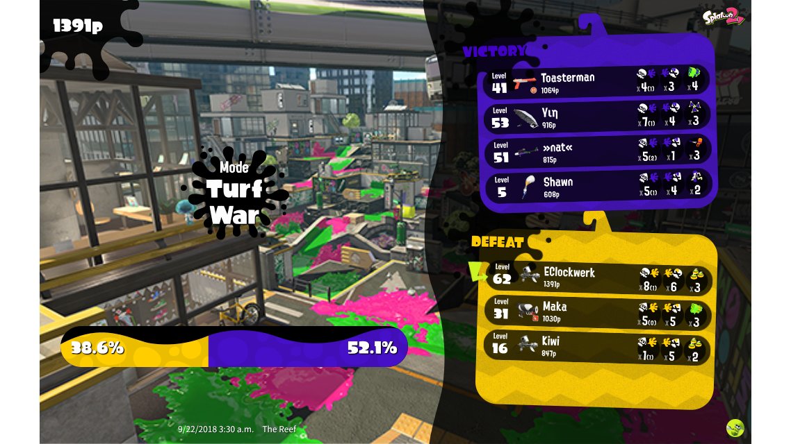 | Mode | Turf War - Regular Battle | ||||||||||||||||||||||||||||