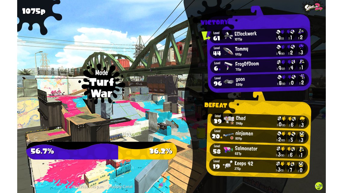 | SplatNet Battle # | 2,360 | ||||||||||||||||||||||||||||||||||