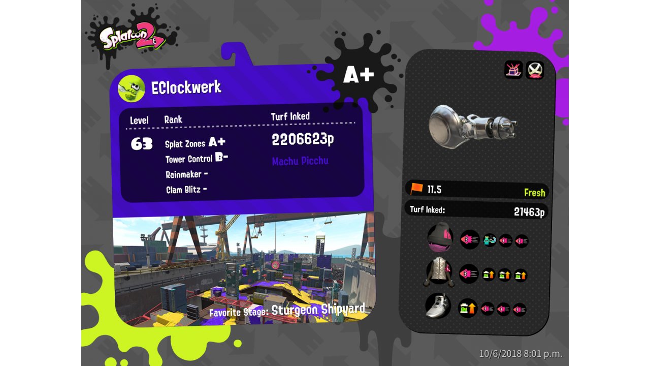 | Mode | Turf War - Regular Battle | ||||||||||||||||||||||||||||