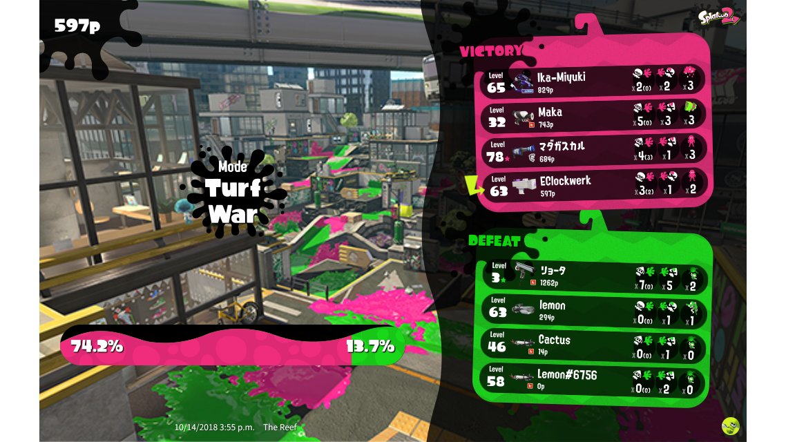 | Mode | Turf War - Regular Battle | |||||||||||||||||||||||||||||||