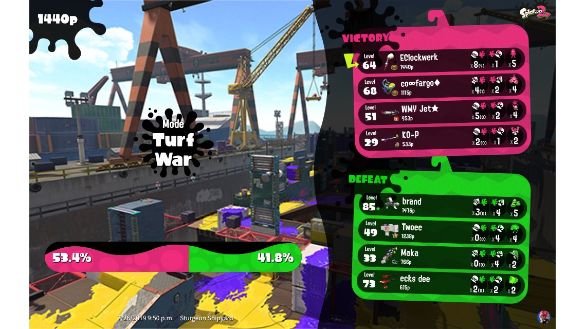 | SplatNet Battle # | 2,514 | ||||||||||||||||||||||||||||||||||