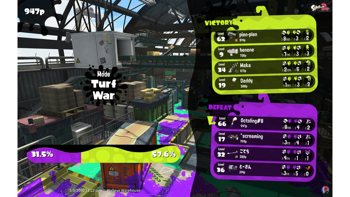 | Mode | Turf War - Regular Battle | |||||||||||||||||||||||||||||||