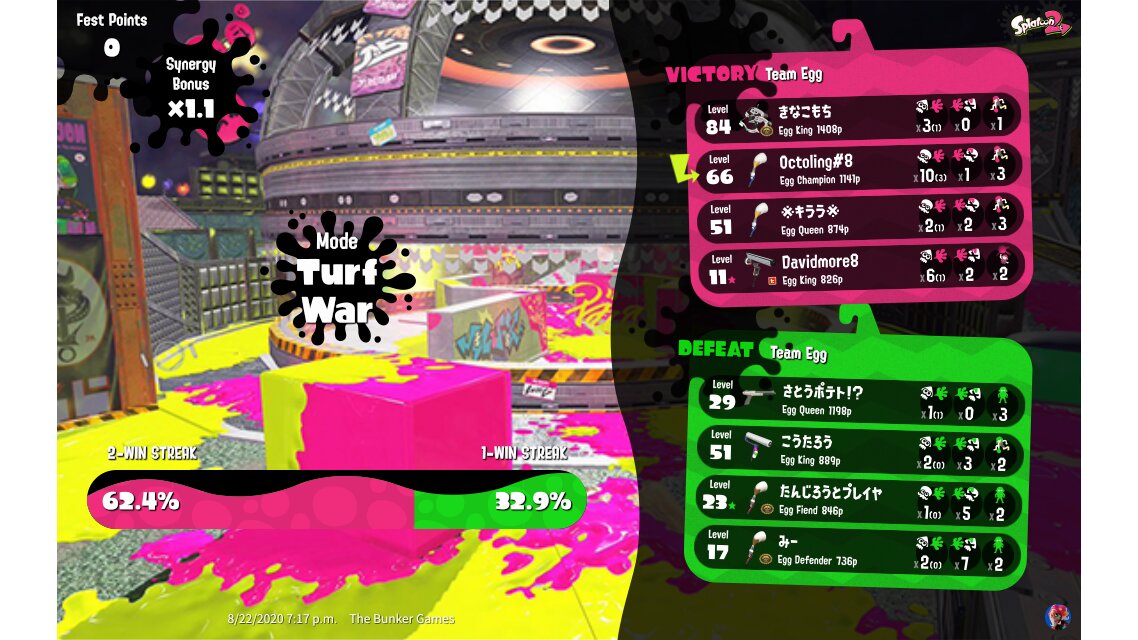 | Mode | Turf War - Splatfest (Normal) | |||||||||||||||||||||||||||||||