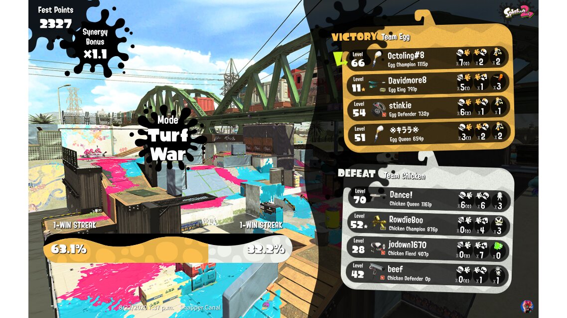 | Mode | Turf War - Splatfest (Normal) | ||||||||||||||||||||||||||||||||||