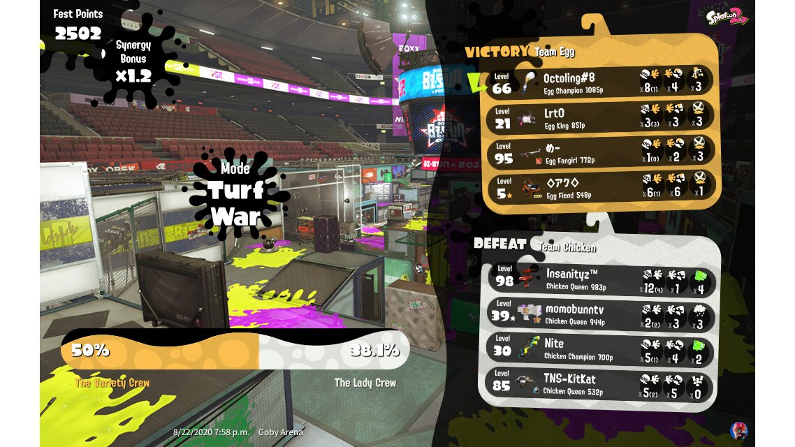 | Mode | Turf War - Splatfest (Normal) | ||||||||||||||||||||||||||||||||||
