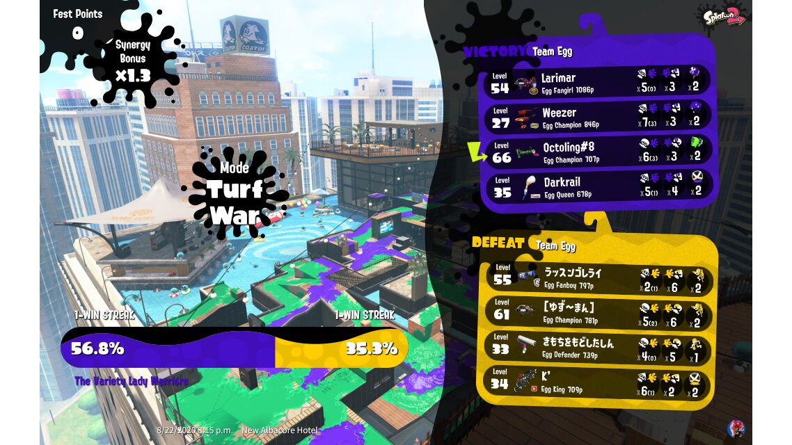 | Mode | Turf War - Splatfest (Normal) | ||||||||||||||||||||||||||||