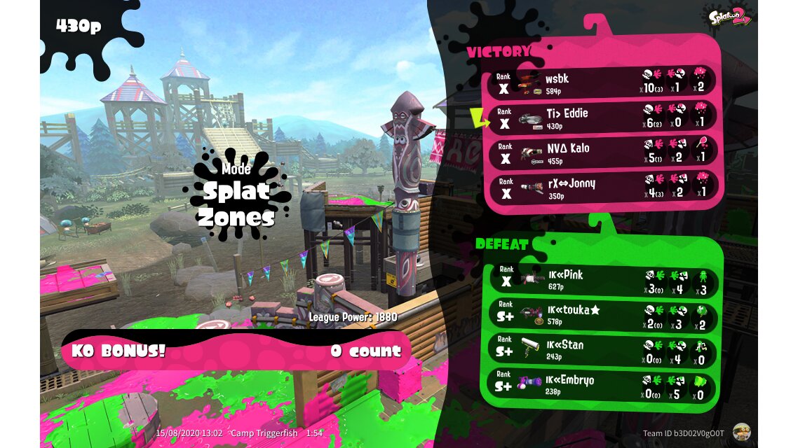| Mode | Splat Zones - League Battle (Quad) | |||||||||||||||||||||||||||||||||||||