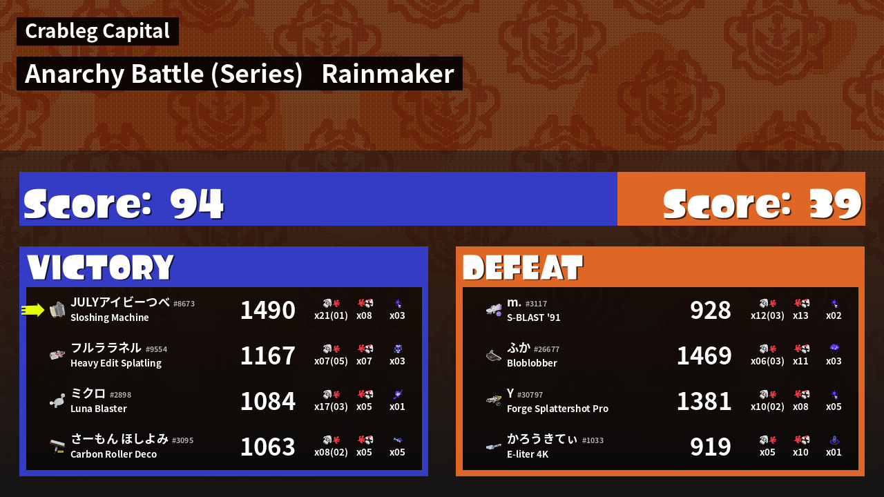 | Mode | Rainmaker - Anarchy Battle (Series) | ||
