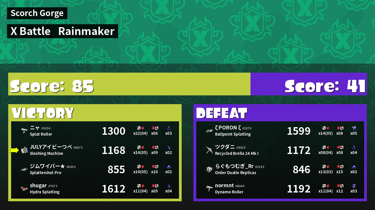 | Medals | #1 Score Booster #1 Splat Assister #1 Checkpoint Breaker | ||