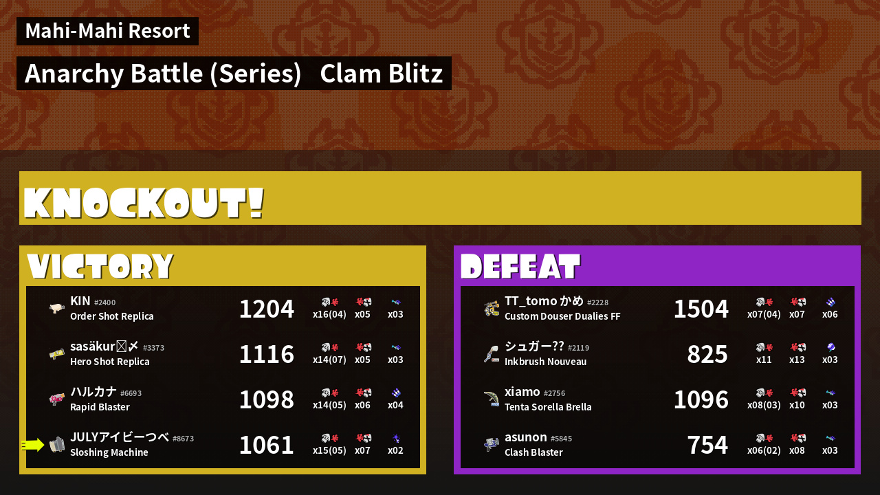 | Mode | Clam Blitz - Anarchy Battle (Series) | ||