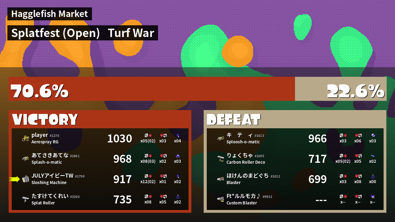 | Medals | #1 Overall Splatter #1 Popular Target #1 Super Jump Spot | ||