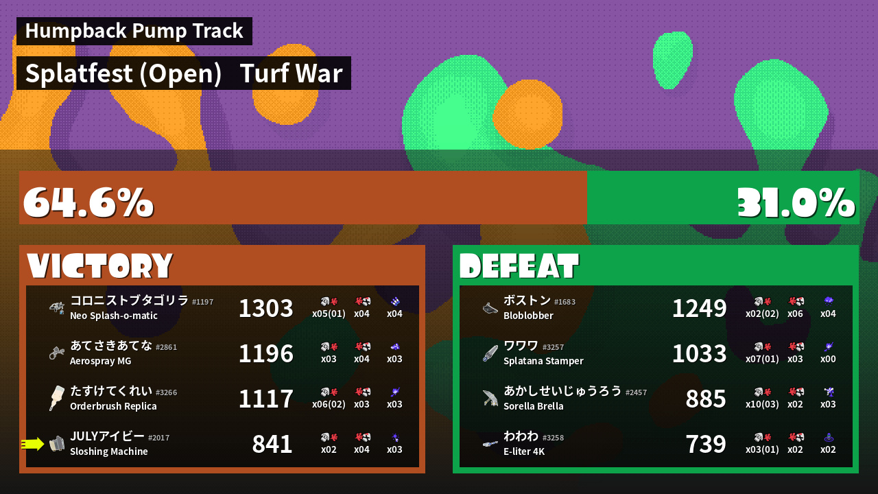 | Weapon | Sloshing Machine ( Fizzy Bomb / Booyah Bomb) | ||