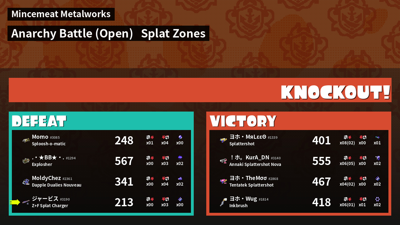 | Mode | Splat Zones - Anarchy Battle (Open) | ||
