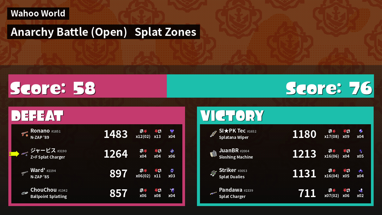 | Mode | Splat Zones - Anarchy Battle (Open) | ||
